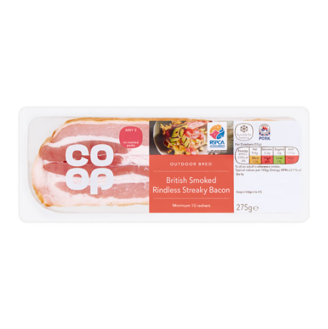 • Co-op Unsmoked Streaky Bacon – 275g